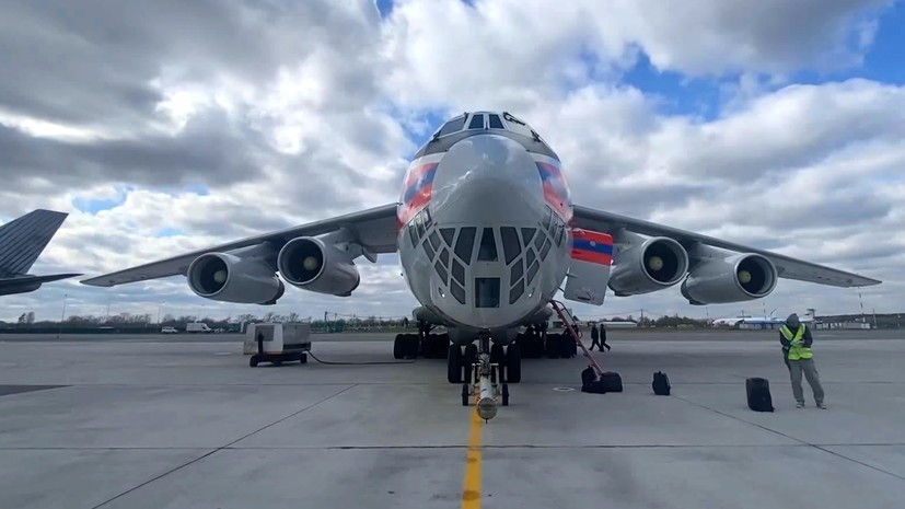 ОХУ-аас Энэтхэгт үзүүлж буй эмнэлгийн хэрэгслийн тусламжийг тээвэрлэсэн “Ил-76” онгоц хэдхэн минутын өмнө Нью-Дели хотод газарджээ.