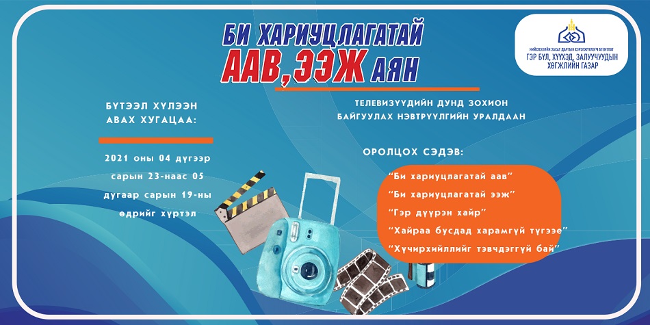 Тэгвэл Гэр бүлийн хүчирхийлэлтэй тэмцэх тухай хуулийн хэрэгжилтийг хангах ажлын хүрээнд эцэг, эхчүүдийн үүрэг, хариуцлагыг нэмэгдүүлэхэд чиглэсэн нэвтрүүлгээр иргэд, олон нийтийг мэдээ, мэдээллээр хангах, тэдний оролцоог нэмэгдүүлэхэд хэвлэл мэдээллийн байгууллага болон сэтгүүлчдийг идэвхжүүлэх зорилгоор "Би хариуцлагатай аав, ээж" аяны хүрээнд телевизийн нэвтрүүлгийн уралдаан зарлалаа.