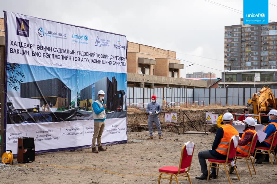 НҮБ-ын Хүүхдийн Сан, Монгол Улсын Засгийн газар, Эрүүл Мэндийн Яамтай хамтран эрүүл мэндийн салбарын чадавхыг бэхжүүлэх, тэр дундаа цар тахал, халдварт өвчний дэгдэлтийн үед авах хариу арга хэмжээ, бэлэн байдлын зэргийг сайжруулах зорилгоор Халдварт өвчин судлалын үндэсний төвийн дэргэд шинээр баригдах Вакцин Био Бэлдмэлийн Төв агуулахын шинэ барилгын ажлыг өнөөдөр /2021.05.05/ эхлүүллээ.