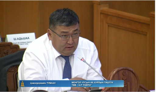 Хуулийн төслийг УИХ-ын гишүүн Ц.Туваан танилцуулсан ба төгсгөлд нь тэрбээр "Монгол Улсад хүний эрх зөрчигдөж байна. УИХ-ын гишүүн Ш.Адьшаагийн гарыг мушгилаа. А.Адъяасүрэн эмэгтэй УИХ-ын гишүүн дэвсэх дэвсгэргүй өлсгөлөн зарлаад хэвтэж байгаа шүү. Монгол Улсад нэг намын дарангуйлал сөнөх болно" гэв.