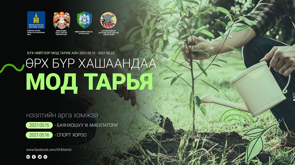 Нийслэлчүүд бүх нийтээрээ мод тарих үндэсний өдрийг жил бүр уламжлал болгон зохион байгуулсаар ирсэн. Энэ жил бүх нийтийн мод тарих арга хэмжээний хүрээнд “Өрх бүр хашаандаа мод тарья” уриатайгаар Нийслэлийн 6 дүүргийн 5000 орчим айл өрхийг хамруулан зохион байгуулахаар болжээ.