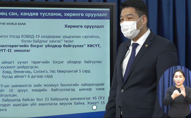 Эрүүл мэндийн сайд С.Энхболд мэдээлэл хийлээ. Монгол Улсад коронавирусний дотоодын халдвар бүртгэгдсэнээс хойш дөрвөн удаа хөл хорио тогтоосон. Энэ хугацаанд халдварын тархалтыг илэрхийлэх тархвар зүйн муруй байнга өсөлттэй байсан. Харин сүүлийн долоо хоногийн байдлаар тархвар зүйн муруй буурах хандлагатай байна. Үүнд, хөл хорио болон вакцинжуулалт нөлөөлж байна гэж үзэж байгаа. Манайд халдварын тохиолдол буурч байгаа ч тайвшрах болоогүй. Дэлхийн бусад улс орнуудад халдварын гурав, дөрөв дэх давлагаа үүсэж байна. Бидний гол зорилго иргэдээ хурдан вакцинжуулалтад хамруулах юм.