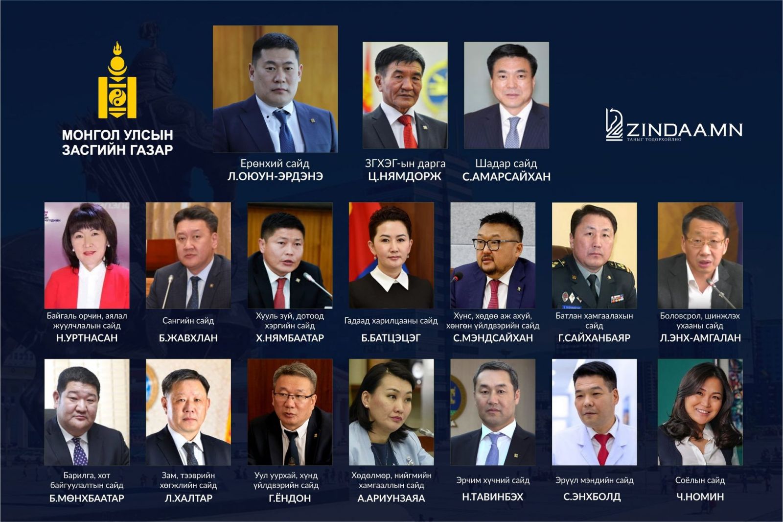 Монгол Улсын 33 дахь Ерөнхий сайд Л.Оюун-Эрдэнийн Засгийн газар 100 хоногтойгоо золголоо.