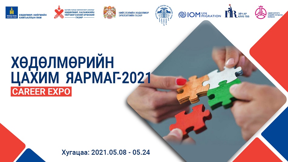 “ХАЛАМЖААС ХӨДӨЛМӨРТ” зорилтын хүрээнд “ЦАР ТАХЛЫН ЭСРЭГ ХАМТДАА-ХӨДӨЛМӨРИЙН ЦАХИМ ЯАРМАГ-2021” арга хэмжээг Хөдөлмөр, нийгмийн хамгааллын яам, Хөдөлмөр, халамжийн үйлчилгээний ерөнхий газар, Нийслэлийн хөдөлмөр эрхлэлтийн газар, Монголын үндэсний худалдаа аж үйлдвэрийн танхим, НҮБ-ын дэргэдэх Шилжилт хөдөлгөөний байгууллага, Монголын ажил олгогч эздийн нэгдсэн холбоо, Эйч Ар Клуб ТББ хамтран тавдугаар сарын 8-24-ний өдрүүдэд зохион байгуулж байна.