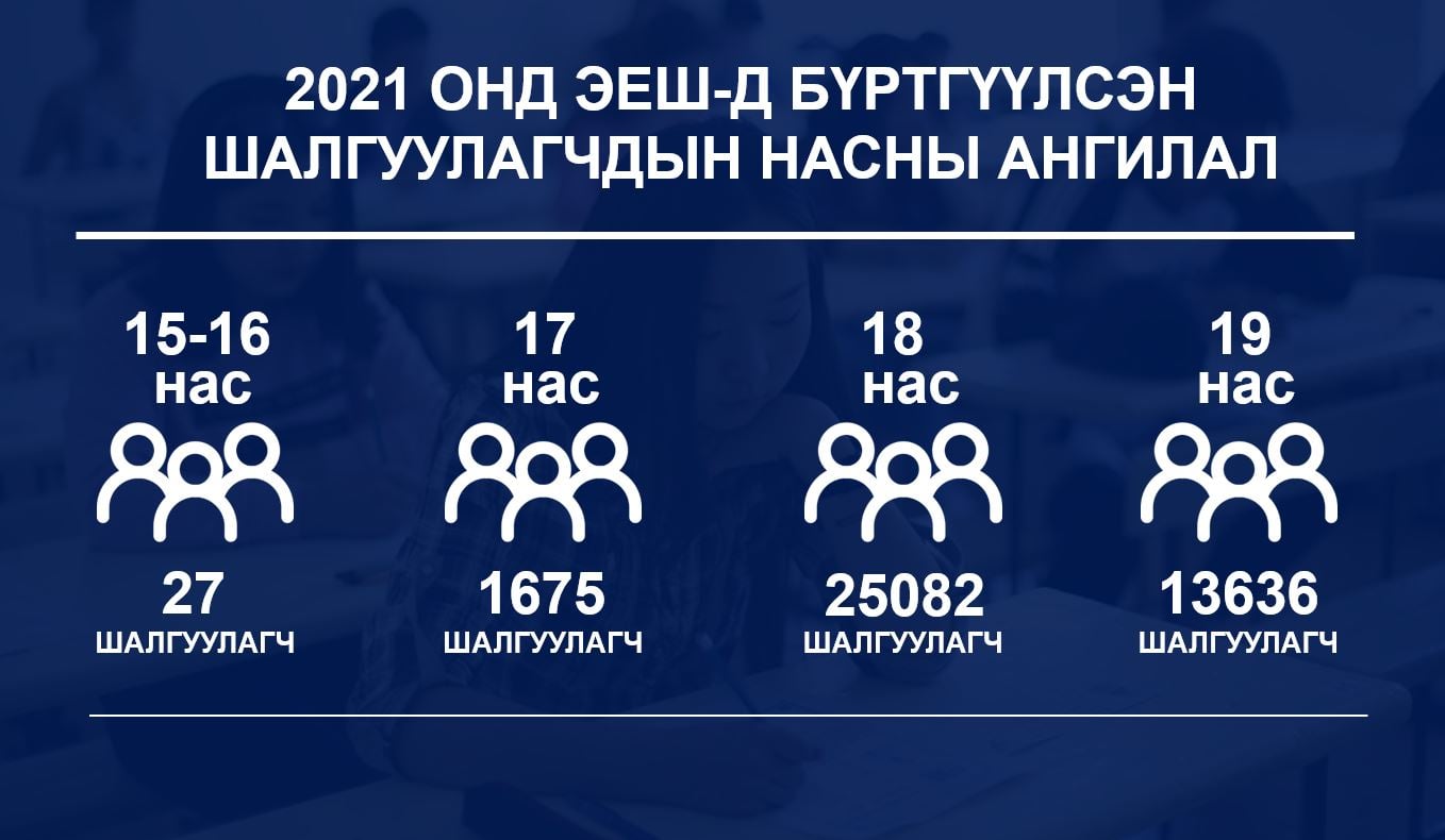 ЭЕШ-д орох сурагчдын насны бүтцийг авч үзвэл,