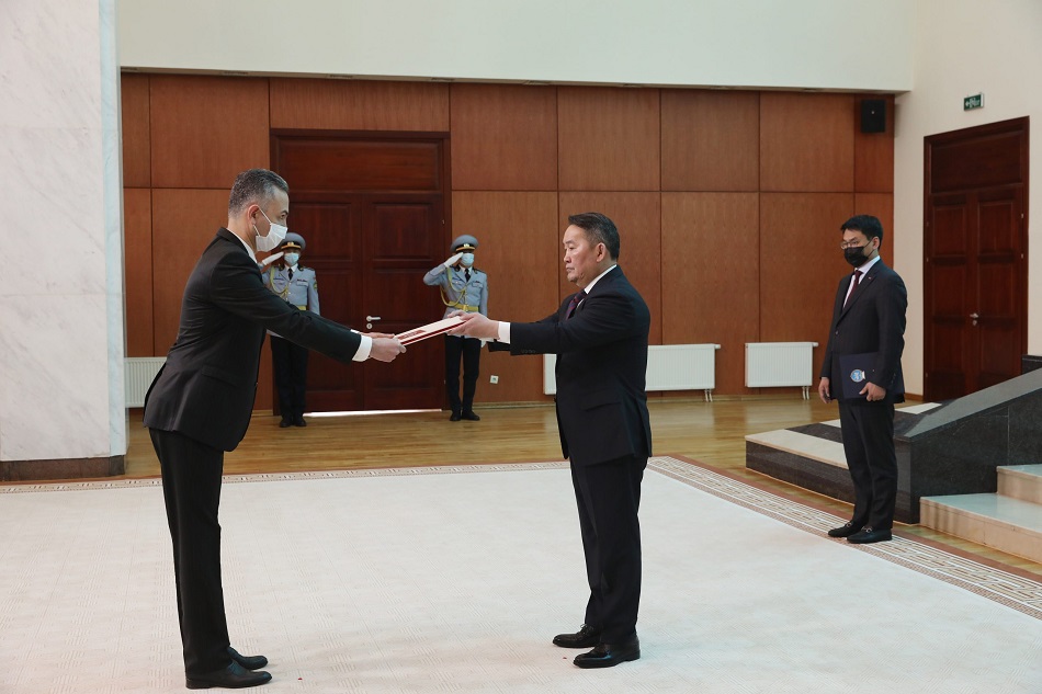 Бүгд Найрамдах Турк Улс /БНТУ/-аас Монгол Улсад суух Онц бөгөөд Бүрэн эрхт Элчин сайд Зафер Атеш өнөөдөр /2021.05.13/ Монгол Улсын Ерөнхийлөгч Халтмаагийн Баттулгад Итгэмжлэх жуух бичгээ өргөн барив.