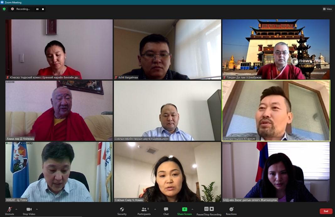 Монголын Бурхан шашны төв Гандантэгчэнлин хийдийг Юнеско-Дэлхийн соёлын өвд бүртгүүлэх зорилгоор Соёлын Сайд Ч.Номин, Соёлын өвийн газрын дарга Б.Даваацэрэн, Нийслэлийн Ерөнхий Архитектор бөгөөд Барилга Хот Байгуулалт Хөгжлийн Газрын дарга Ц.Тулга, Нийслэлийн Аялал Жуулчлалын Газрын дэд дарга н.Энхтүвшин , Юнеско - Монголын Үндэсний Комиссын Нарийн бичгийн дарга С.Уянга, Гандантэгчэнлин хийдийн Хамба лам Д.Чойжамц, Да лам н.Бямбажав, БГД-ийн Засаг даргын орлогч н.Жаргалсүрэн, БГД-ийн 16-р хорооны Засаг даргын үүрэг гүйцэтгэгч Х.Энх-Эрдэнэ нартай өчигдөр /2021.05.15/ Zoom хэлэлцүүлэг өрнүүллээ.