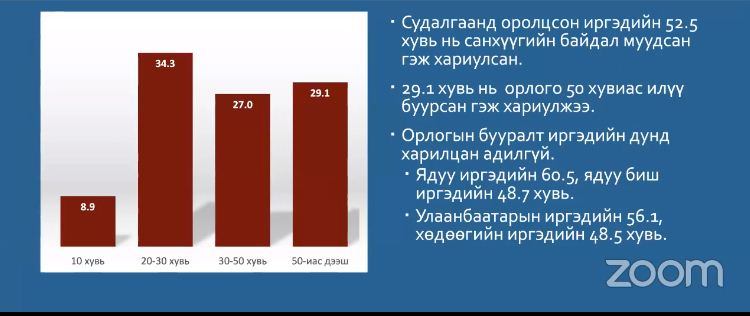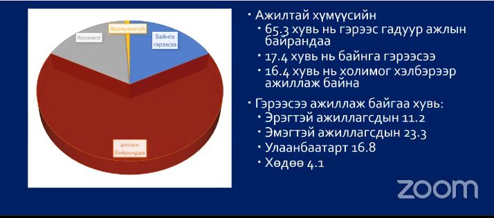 Ковидын нөхцөл байдал ажил эрхлэлт, ажлын нөхцөл байдалд хэрхэн нөлөөлж байна вэ. Иргэд ойрын саруудад юунд хамгийн их санаа зовж байна вэ гэдэгт чиглэсэн судалгааг мөн хийсэн байна.
