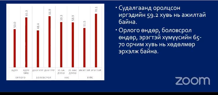 Түүнчлэн 2021 оны нэгдүгээр улирлын тайлан  нь 29 дэх улиралдаа хийсэн судалгааны дүн болж байна. Энэ оны эхний улирлын судалгааг гуравдугаар сарын 20-ноос дөрөвдүгээр сарын 3-ны хооронд Улаанбаатар хот, орон нутгийн 1022 иргэнийг санамсаргүй түүврийн аргаар хамруулж, уламжлалт хэлбэрээр хийжээ.