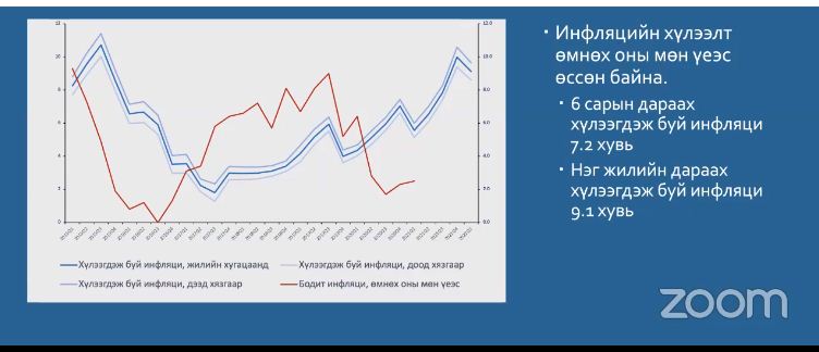 “Өмнө нь 2020 оны дөрөвдүгээр улирлын байдлаар мөн инфляцын хүлээлт өссөн. Дахиад нэгдүгээр улиралд үнийн түвшин өндөр байна гэсэн хүлээлт иргэдийн дунд байгаа юм. Үүн дээр  аль аль талаас нь л бодох ёстой байх. Нэг талаас иргэдийн дунд ийм хүлээлт байна гэдэг чинь Төв банкнаас бодлого явуулахдаа үүнийг тооцоолж үзэх, хэрэгтэй л болно гэсэн үг. Яагаад гэхээр хэрэв ийм үнийн өсөлт бий болно гэсэн хүлээлттэй байгаа бол тэлэх бодлогын нөлөө бүр ч илүү үнийн түвшин дээр очиж буух хандлага  байна гэсэн үг. Иргэдийн дунд яагаад үнэ өснө гэсэн хүлээлт бий болчихов оо гэдэгт өөрийн тань  асуултын зарим хэсэг нь чиглэж байх шиг байна. Үүнийг  цааш нь дахиад нарийн судлах л ёстой. Бэлэн мөнгө тараах бодлого нь барааны үнийг хөөрөгдөх, эрэлтийг өсгөх магадлалтай гэсэн хүлээлт байж болно. Нөгөө талдаа цар тахлын үед энэ мэдээллийг цуглуулж байгаа. Тиймээс бас нэг нөлөөлөгч хүчин зүйл юу байж болох вэ гэхээр нийлүүлэлт талыг тооцож, судалж байж бид итгэлтэй хариулт өгөх ёстой болох байх. Ямар ч байсан эхний ээлжинд ийм хүлээлт байна аа гэдгийг бид гаргаж ирж байгаа. Яг юунаас болж ийм хүлээлт үүсэв ээ гэдэг дээр дахиад нарийн судлах ёстой болох байх. Мөнгөөр нэлээн дэмжиж буй бодлогууд, тэр тусмаа иргэдээ нэлээн хэмжээний орлогоор дэмжлэг үзүүлнэ гэсэн бодлого батлагдаж байгаа нь нэг  сэжигтэй хүчин зүйл мөн. Нөгөө талаас нийлүүлэлт талын хүчин зүйл байхыг үгүйсгэхгүй. Аль нь илүү давамгайлж байгааг нарийн судлах хэрэгтэй байх” гэсэн хариултыг өгсөн юм.