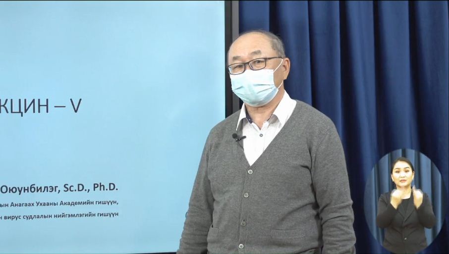 ЭМЯ-ны ээлжит хэвлэлийн хурлын үеэр Монгол Улсын Анагаах ухааны академийн гишүүн, Вирус судлалын нийгэмлэгийн гишүүн доктор, профессор Ж.Оюунбилэг вакцины талаар мэдээлэл өглөө.