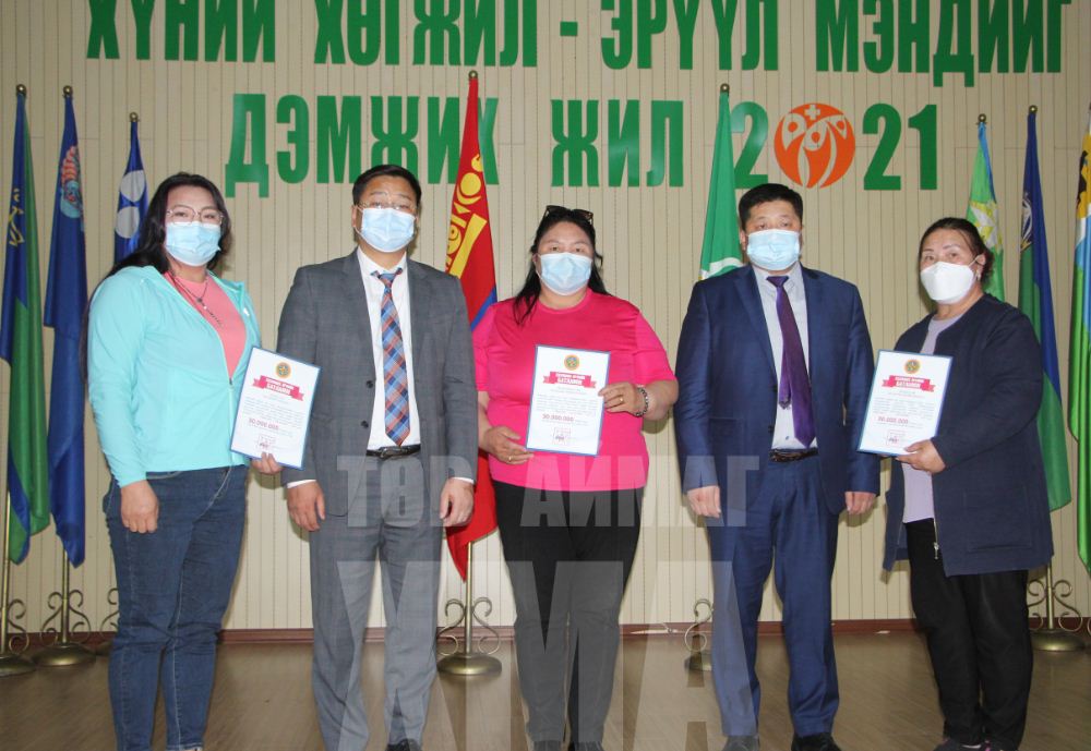 Мөн энэ үеэр аймгийн ХАА үйлдвэрлэлийн стратеги төлөвлөлтийн хүрээнд: Бэлчээрийн мал аж ахуйн үр өгөөжийг дээшлүүлэн, өсвөр малыг эдийн засгийн эргэлтэд оруулах, мах бэлтгэлийн төслийг хэрэгжүүлж буй Бүрэн сумын “Их шижир” хоршоо, Эрдэнэсант сумын “Батхааны өгөөж” хоршоо, Дэлгэрхаан сумын “Давстын өгөөж” хоршоо болон газар тариалангийн үйлдвэрлэлийг нэмэгдүүлэх төслийг хэрэгжүүлж байгаа Эрдэнэ сумын “Батцагаан эсгий” хоршоо, Борнуур сумын “Борнуур Бор толгой” хоршоодод “Аймгийн хөгжлийн сан”-гаас тус бүр 30 сая төгрөгийн “Зээлжих эрхийн батламж”-ийг гардууллаа.