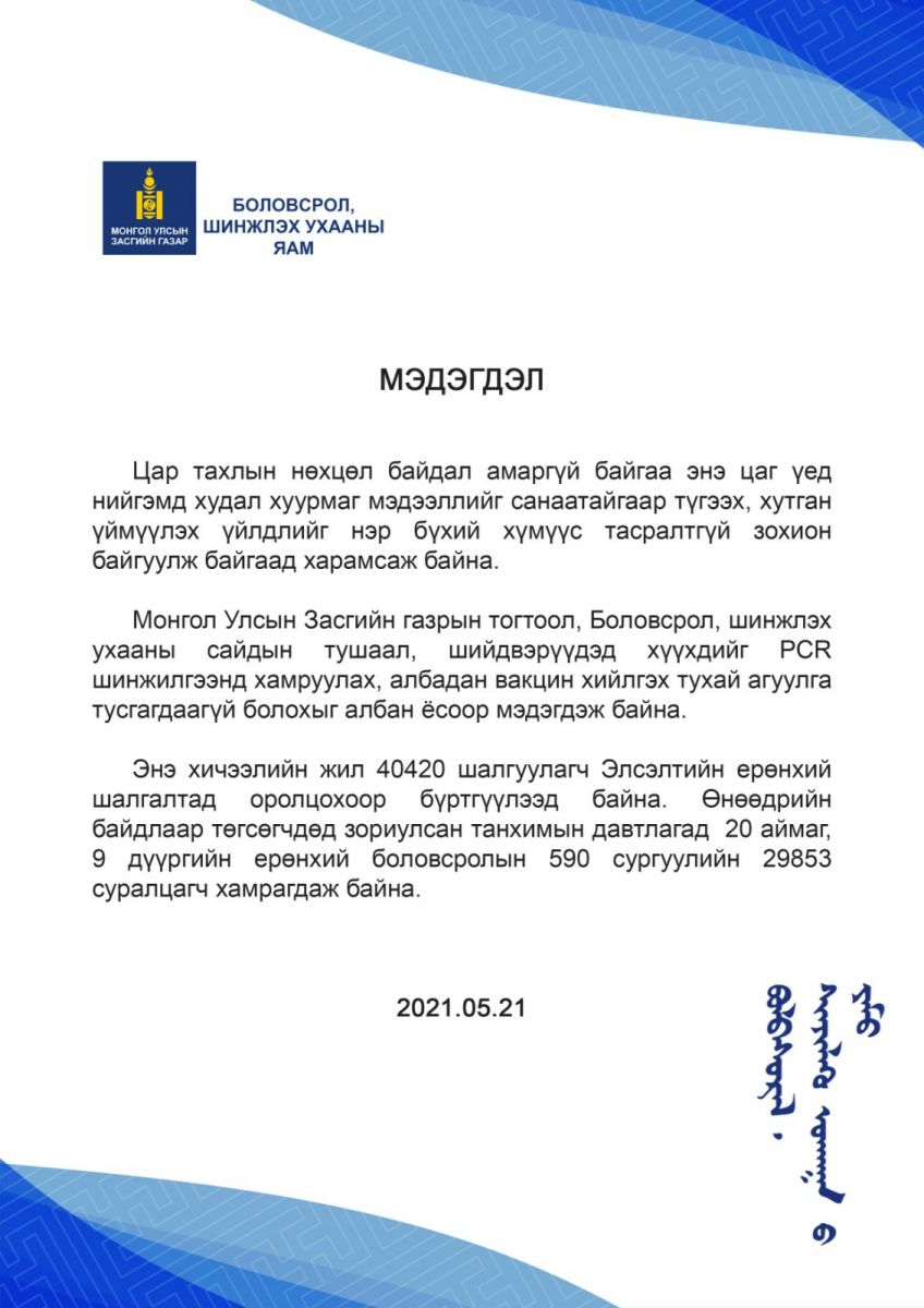 Вакцин хийхийг эрүүл мэндийн яам мэдэхээс Амгаланд хамаагүй дэ