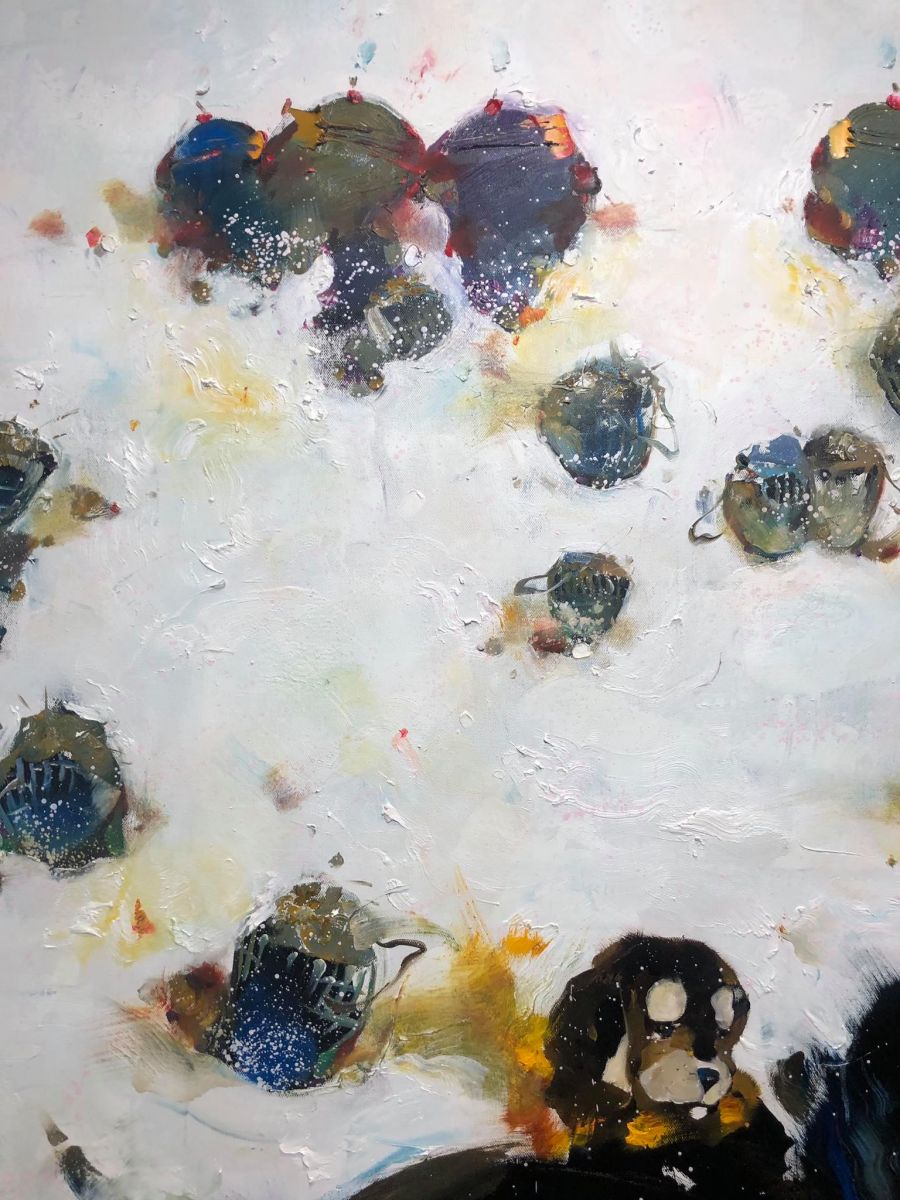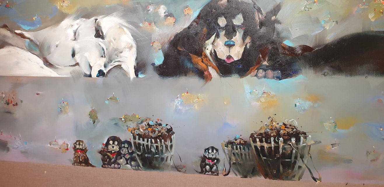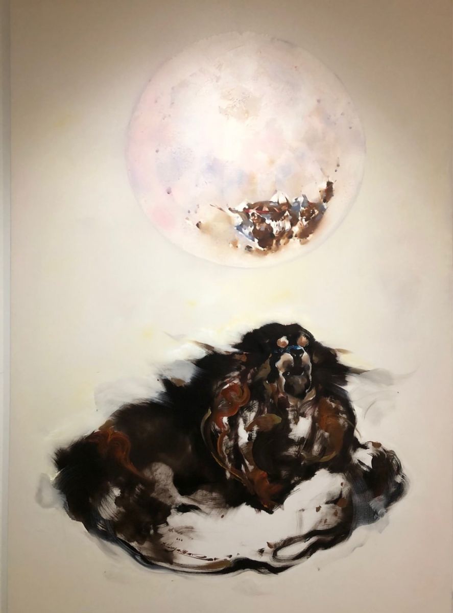 "Огторгуйн нүүдэл" үзэсгэлэнгээр зураач бүсгүй маань байгаль эх, хүн хоёрын шүтэн барилдлага, амьд оршихуйн мөн чанар, эрт үеэс зохицон амьдарч ирсэн нүүдэлчин ахуйн, зан заншил, монгол сэтгэлгээг харуулсан гэгээлэг, өнгөлөг зургуудаа дэлгэжээ. Ялангуяа гэрийн гадаа, хотоо манан налайж байдаг дөрвөн нүдтэй сүрлэг банхараар зураг бүхнээ мануулсан нь учиртай. Банхар нохой эртнээс монгол хүний анд нөхөр байсаар ирсэн. Магадгүй Өлзийжавхлангийн багын анд нөхөр нь нохой байсан байх. Тэр банхар одоо ч бүсгүйн зүүд нойрыг манан, бийр янтайг нь хамгаалж байдаг аж.