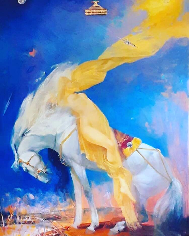 Т.Өлзийжаргал хэмээх даруухан бор залуу өөрийн бүтээлээ имперсионист, модерн урсгалаар язгуур зан заншил, монгол ахуй, морь мал, байгаль орон, дорно дахины философийг шингээж зурдаг билээ. Энэ удаа түүний бүтээлд эртний баатрууд амилж, домогт хүлгийн үүрсээн сонсогдов. Чингис хаан, Жамухтай хөх тэнгэр дор, хөрст газар дээр андгай тавьж буй сүрдэм үйл явдалтай ч нүүр туллаа. Жаахан л урагш алхчих юм бол тэдний шигэлбэр гэзэг салхинаа хийсэж, намрын өвсний сөл хөл дор шаржигнам, ялалт, ялагдлыг зөгнөсөн зүрхнийх нь цохилт сонсогдом амьд ажгуу. Бас тэдний харц тулгарсан огтлолцол дунд хавчуулагдаж, хайрагдаж, хазуулж ч мэдэхээр тийм догшин, дагшин байх ажгуу.