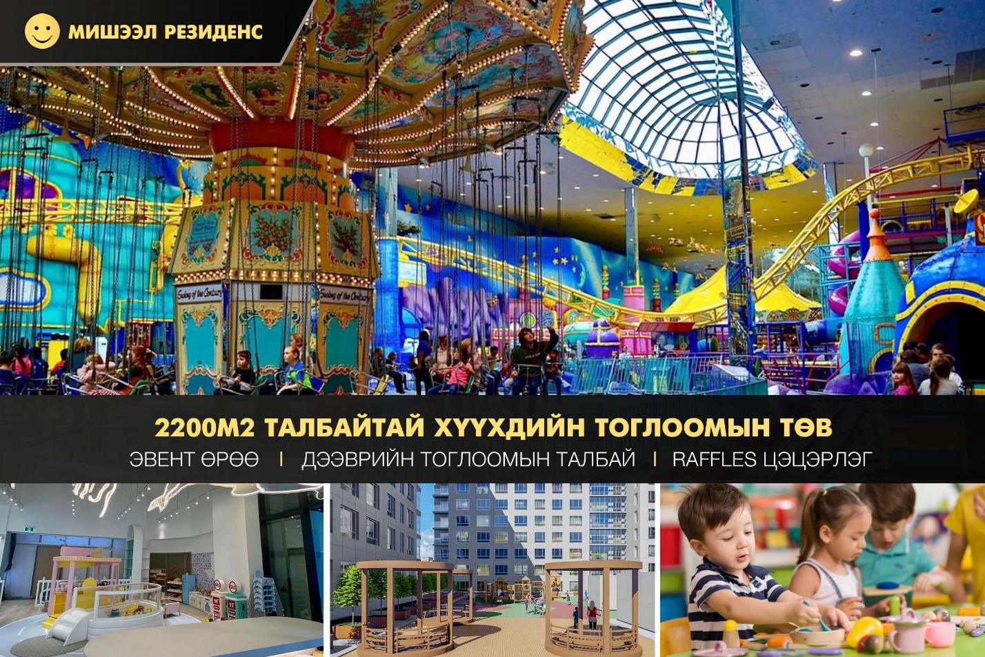 Мишээл Резиденс орон сууцанд оршин суух хүүхдүүдэд зориулсан 2,200м2 тоглоомын төв, төрсөн өдөр тэмдэглэх эвент өрөө, орон сууцны авто зогсоолын дээврийг ашигласан хүүхдийн тоглоомын талбай, олон улсын цэцэрлэг зэргийг цогцоор нь төлөвлөсөн.