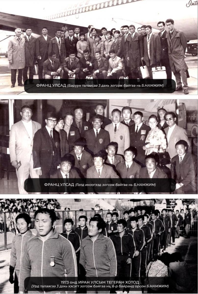 Б.Намжим нь 1972 оны Мюнхены олимпод долоодугаар байрт шалгарч байсан. ДАШТ-д дөрөв оролцож, бүгдэд нь шагналт байрт шалгарч байсан, 1973 оны Азийн аварга болж байв. Монголын бөхчүүдээс хамгийн анх дэлхийн аваргын тэмцээнд айрагдсан бөх бол Б.Намжим.