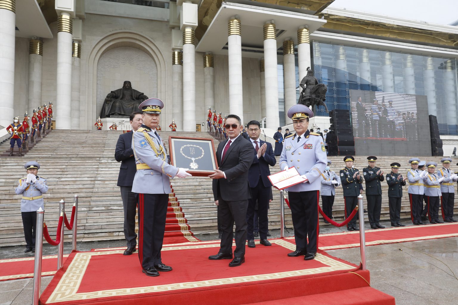 Монгол Улсын Ерөнхийлөгчийн зарлигийн дагуу Монгол Улсын төрийн дээд шагнал, тэргүүн зэргийн “Чингис хаан” одонг хүртээх ёслолын үйл ажиллагаа өнөөдөр төв талбайд боллоо. “Чингис хаан” одонг Зэвсэгт хүчний нийт бие бүрэлдэхүүнийг төлөөлүүлэн Зэвсэгт хүчний Жанжин штабт гардуулав.