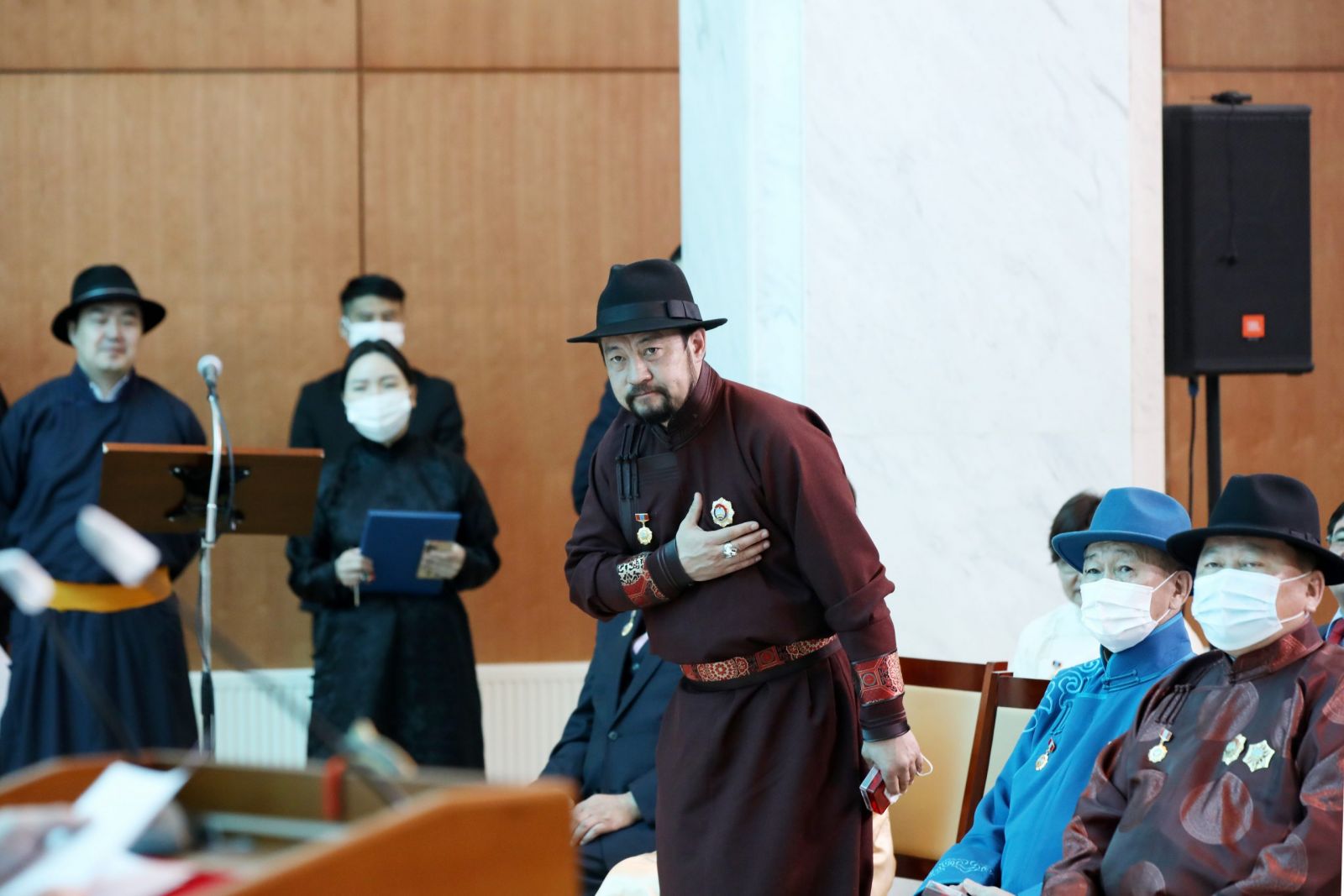 -Баярлалаа. Маш сайхан баярт үйл явдал тохиож байна. Төрдөө “үнсүүллээ”. Монгол Улсын Ерөнхийлөгч маань миний өчүүхэн хөдөлмөрийг өндрөөр үнэлж, Монгол Улсын гавьяат жүжигчин хэмээх эрхэм хүндтэй цолоор шагнасанд үнэхээр их талархаж байна. Мэдээж маш олон хүнд баярлаж, талархсанаа илэрхийлэх нь зүйтэй. Төрүүлж өсгөсөн аав ээж, хайрт хань, үр хүүхэддээ болон хамт олондоо маш их баярлалаа. Би Улсын Драмын Эрдмийн Театрт 20 гаруй жил ажиллаж байна. Манай театрын 90 жилийн ой мөн энэ жил тохиож байгаа. Энэ түүхт 90 жилийн 20 гаруй жилд нь театртайгаа хувь заяагаа холбож, уран бүтээлээ туурвижээ. Хамтарч ажилласан олон уран бүтээлчид бий. Бүгдэд нь чин сэтгэлийн талархал илэрхийлье. Хамгийн гол нь үзэгч, түмэндээ маш их баярлалаа. Өмнө нь мэддэггүй байж. Гэхдээ энэ хүнд их урам, цаашид ихийг хийж бүтээх сэдэл, хүчийг өгдөг юм шиг санагдлаа. Цаашид улам их хичээж ажиллах урам авлаа. Бүгдэд нь маш их баярлалаа. Төрдөө, түмэндээ үнэлүүлнэ гэдэг маш сайхан юм. Энэ их хайрыг дааж явах хариуцлага ирж байна даа. Үзэгчдэдээ, ард түмэндээ, төрдөө маш их баярлалаа.