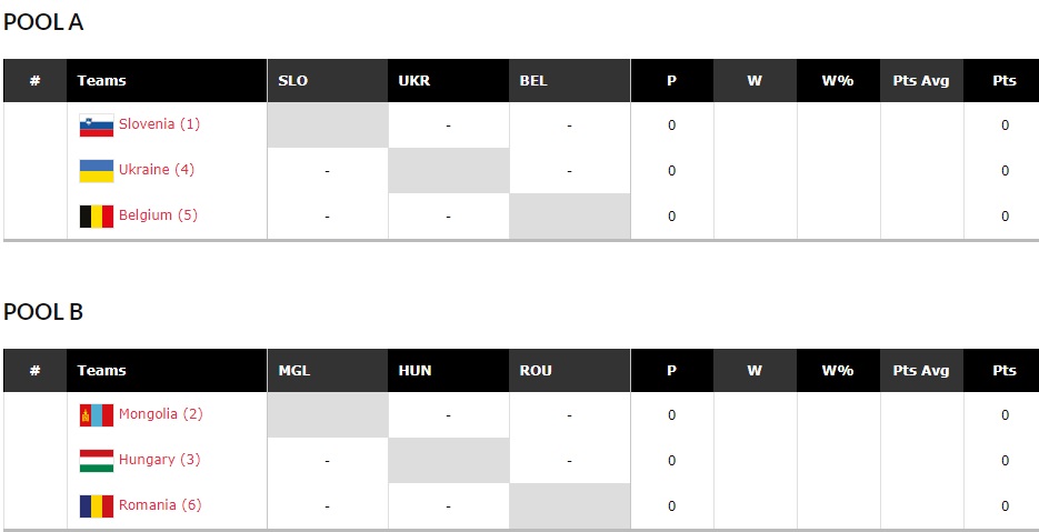 Энэ зургаан баг бол Унгар, Украин, Монгол, Словен, Румын, Бельги.