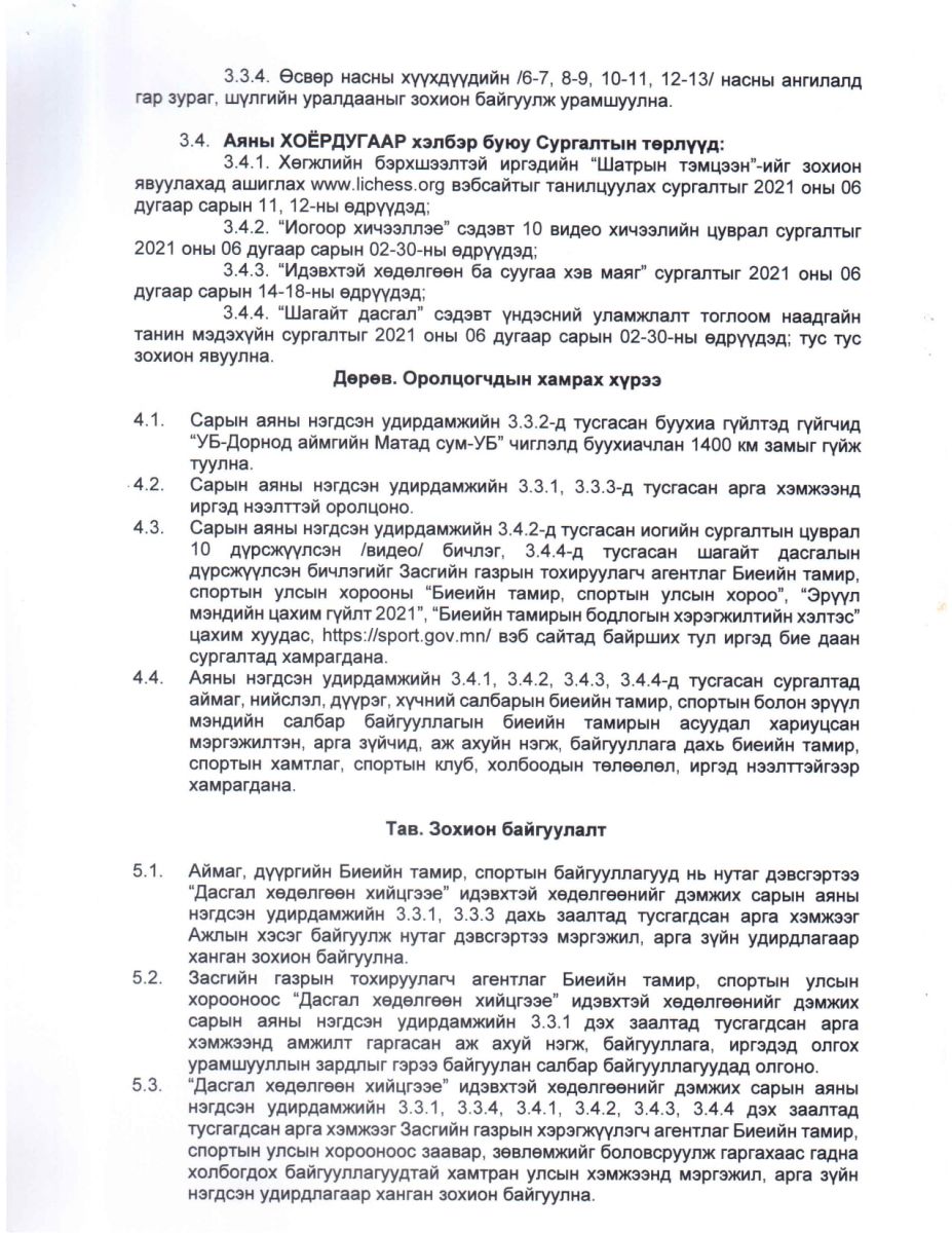 Аяны хоёрдугаар хэлбэрийн хүрээнд дараах сургалтуудыг зохион байгуулна. 2021.06.11,12-ны өдрүүдэд: Хөгжлийн бэрхшээлтэй иргэдийн “Шатрын тэмцээн” зохион явуулахад ашиглах www.lichess.org вэб сайтыг танилцуулах сургалт.