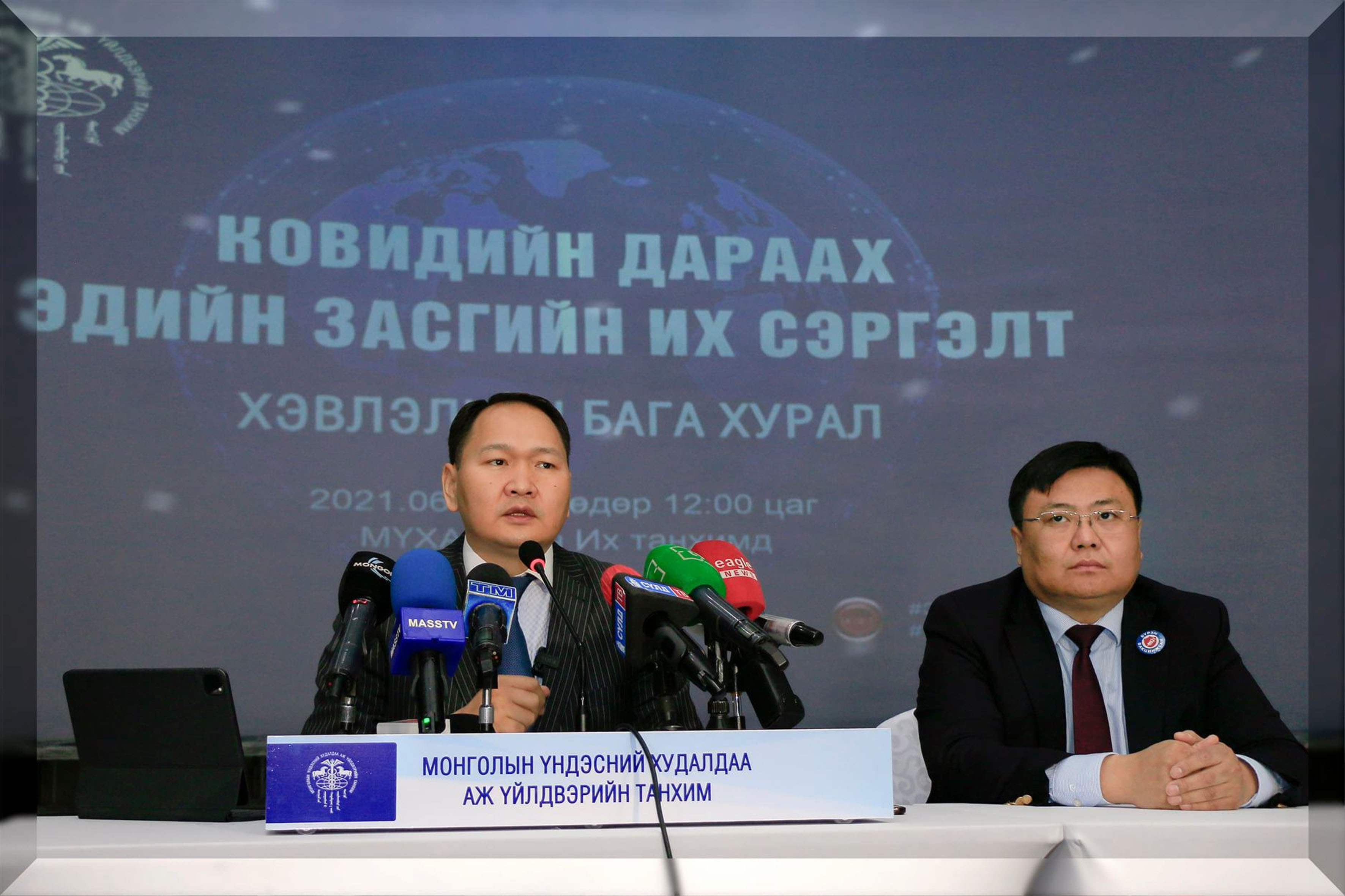МҮХАҮТ-аас КОВИД-19 цар тахлын дараах эдийн засгийн “Их сэргэлт” санаачилгыг дэвшүүлж буйгаа зарласан. Уг санаачилгад цар тахлын улмаас хүнд байдалд орсон аж ахуйн нэгж, иргэдэд татварын өршөөл үзүүлэх замаар ижил гараанаас дахин эхлэх боломжийг тусгажээ.
