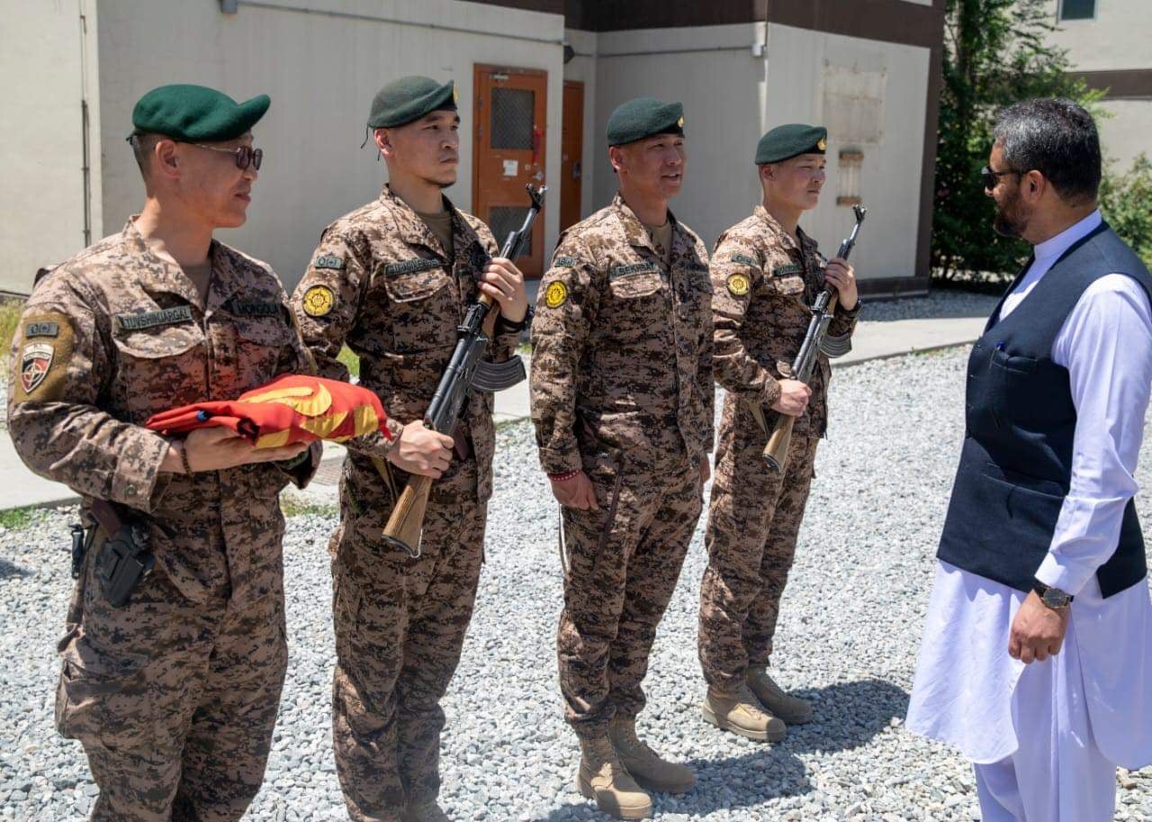 Эвслийн цэргийн “Шинэ Кабул Бааз”-ыг Афганистаны үндэсний батлан хамгаалах аюулгүй байдлын хүчинд хүлээлгэн өгөх ёслолын ажиллагаа 2021 оны тавдугаар сарын 28-ны өдөр явагдаж, баазад үүрэг гүйцэтгэж байсан цэргийн багууд өөрийн улсын төрийн далбааг буулгах, ИБНАУ-ын төрийн далбааг мандуулах ёслолын арга хэмжээ зохион байгуулагдсан бөгөөд Монгол Улсын Зэвсэгт хүчний цэргийн багийн захирагч, дэд хурандаа М.Түвшинжаргал, цэргийн багийн холбогдох бүрэлдэхүүний хамт энэхүү арга хэмжээнд оролцлоо.
