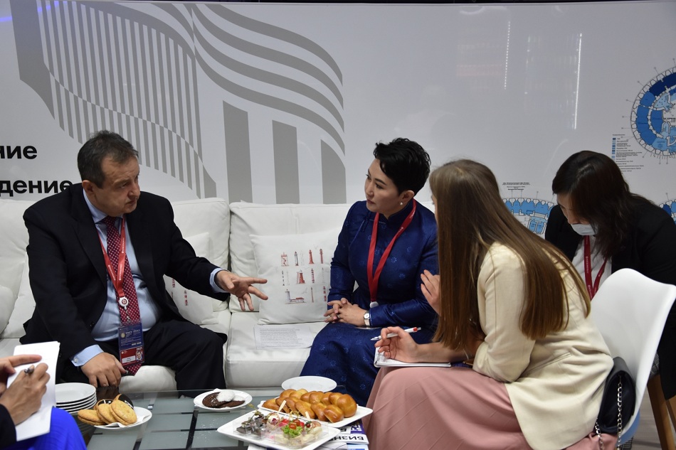 Гадаад харилцааны сайд Б.Батцэцэг Петербургийн олон улсын эдийн засгийн чуулга уулзалтад оролцох үеэрээ Бүгд Найрамдах Серби Улсын парламент(Ардын Скупшина)-ын дарга Ивица Дачичтай 2021 оны 6 дугаар сарын 3-ны өдөр Санкт-Петербург хотноо уулзав.