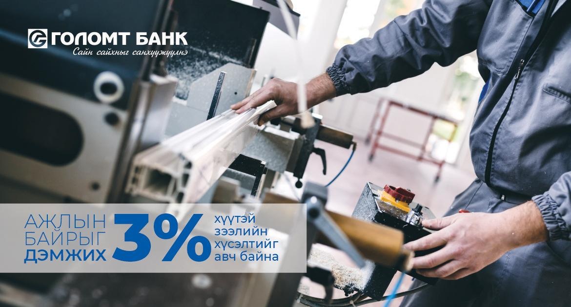 Монгол Улсын Засгийн газраас батлан хэрэгжүүлж буй Эрүүл мэндээ хамгаалж, эдийн засгаа сэргээх 10 их наядын цогц төлөвлөгөөний хүрээнд Голомт банк бизнес эрхлэгч иргэд, аж ахуйн нэгжүүдэд жилийн 3 хувийн хүүтэй “Ажлын байрыг дэмжих” зээлийг олгож, хамтран ажиллаж байгаа билээ.