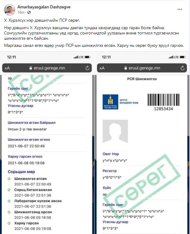 Тэрбээр "У.Хүрэлсүх нэр дэвшигчийн ПСР сөрөг. Нэр дэвшигч У. Хүрэлсүх вакцины давтан тундаа хамрагдаад сар гаруй болж байна. Сонгуулийн сурталчилгааны үед иргэд, сонгогчидтой уулзахын өмнө тогтмол түргэвчилсэн шинжилгээ өгч байсан. Маргааш санал өгөх өдөр учир ПСР-ын шинжилгээ өгсөн. Хариу нь сөрөг буюу эрүүл гарчээ" гэж цахим хуудаснаа мэдээллээ.