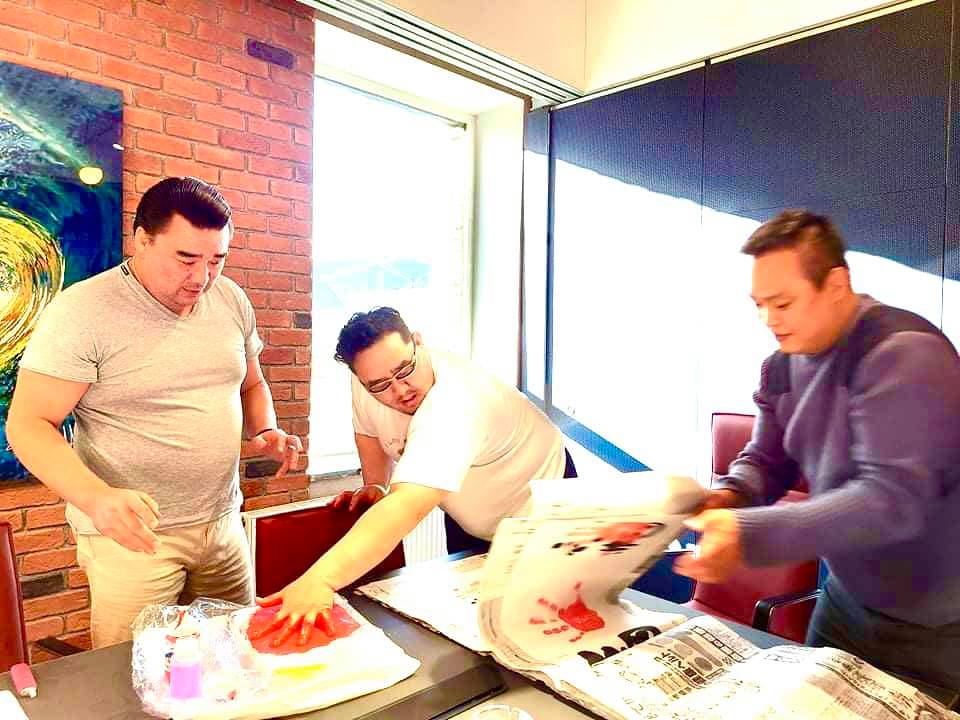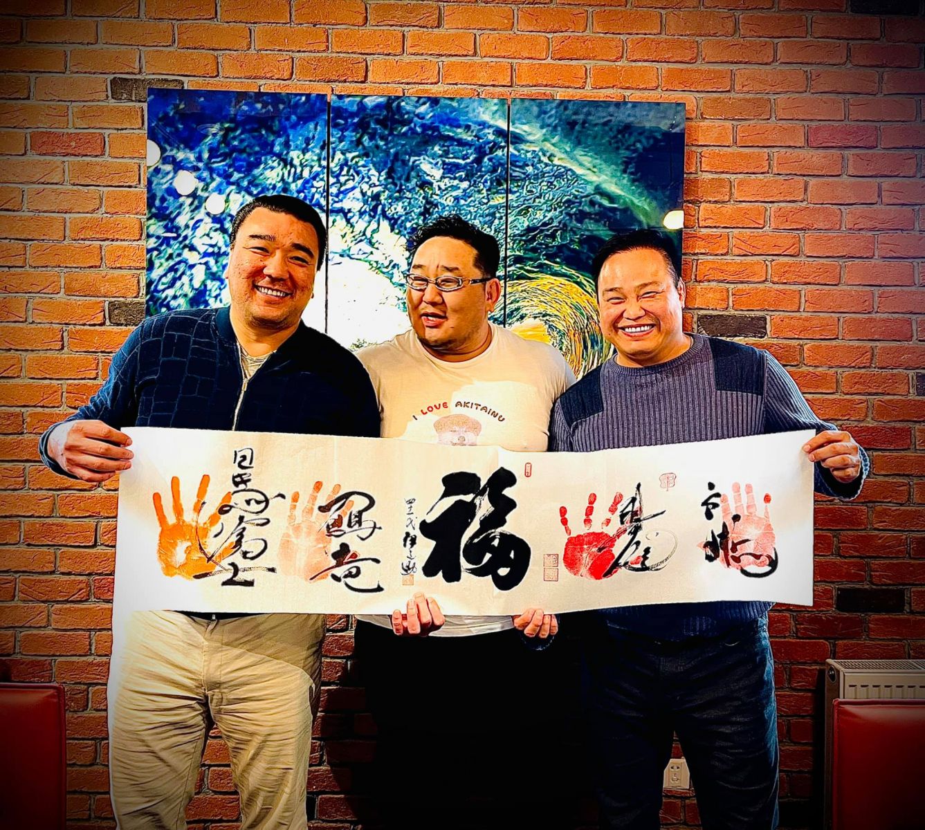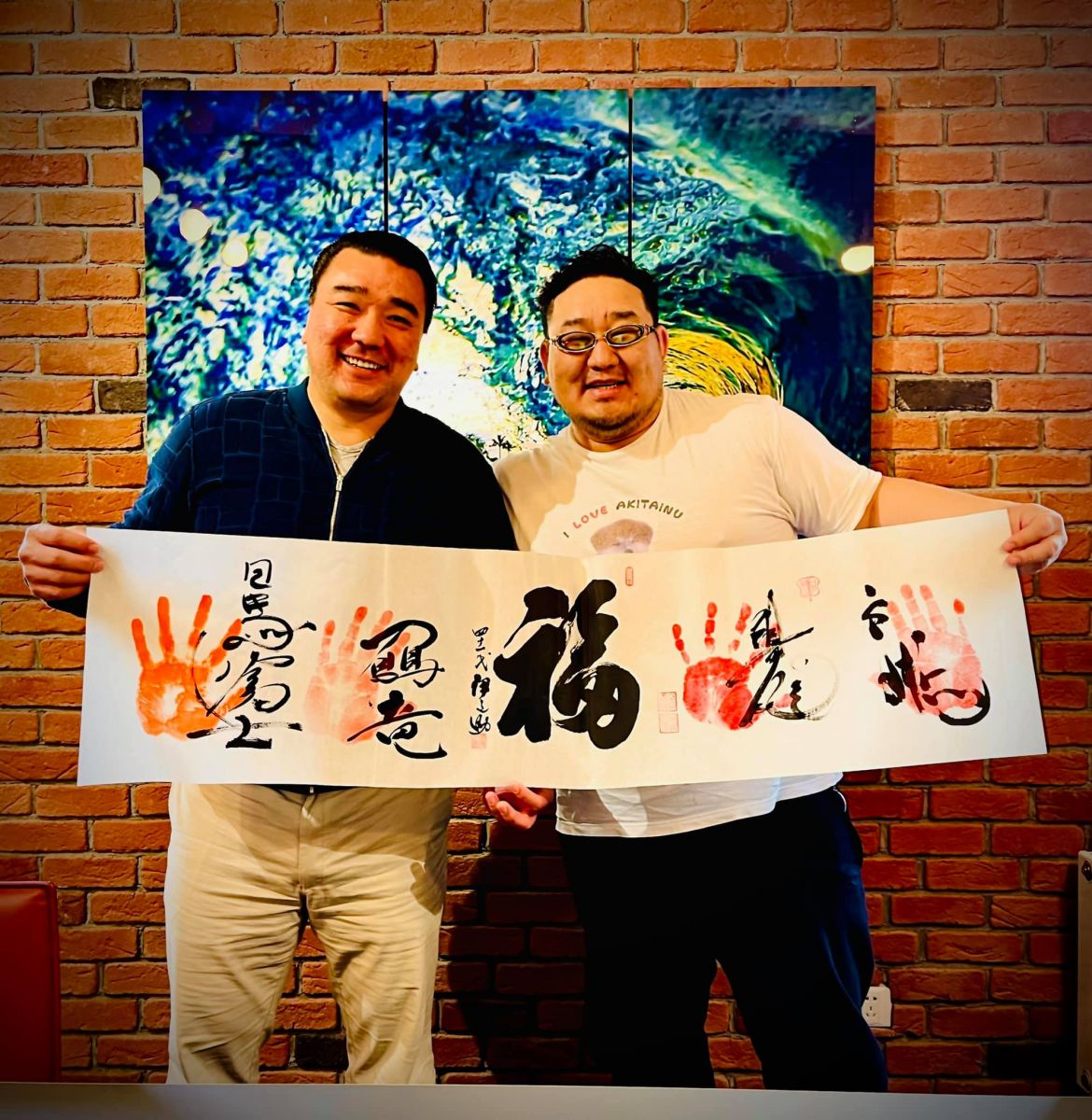 Мэргэжлийн сүмо бөхийн 68 дахь ёкозүна Асашёорюү, 69 дэх ёкозүна Хакүхо, 70 дахь ёкозүна Харүмафүжи, 71 дэх ёкозүна Какүрюү нарын хамтдаа дарсан гарын хээтэй дардас бол ховрын ховор дурсгал билээ.