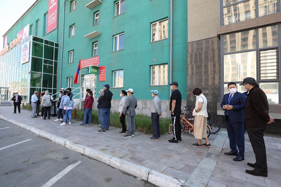 Ерөнхий сайд Л.Оюун-Эрдэнэ, хотын дарга Д.Сумъяабазар нар "Дүнжингарав" худалдааны төвийн эсрэг талд байрлах "Global innova" сургуулийн санал авах байранд саналаа өгөхөөр дараалалд зогсож байна.