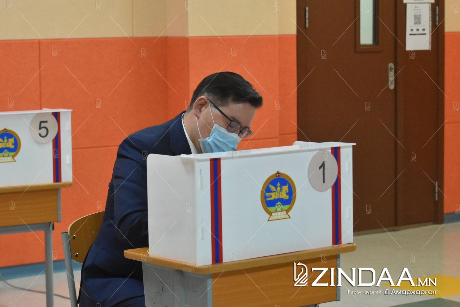 УИХ-ын дарга Г.Занданшатарын хувьд Хан-Уул дүүргийн 17-р хороо, "Time square" хотхон дахь JET сургуулийн санал авах байранд 12:00 цагт саналаа өглөө.
