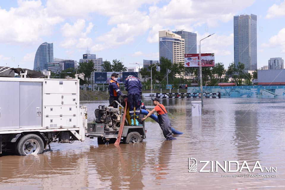 Энэ талаар Ус сувгийн удирдах газраас тодруулахад "Одоогоор 10 гаруй хүний бүрэлдэхүүнтэй тогтсон их хэмжээний усыг соруулах, шавхах ажил явагдаж байна. Усыг соруулах 4-5 машин, төхөөрөмжтэй ажиллаж байна. Хэр хугацаа орохыг нь мэдэхгүй ч ямар ч гэсэн тогтсон их хэмжээний усыг шавхах ажлыг хийж байна. Саяхан орсон борооны улмаас Дунд гол үерлэсэн. Үерлэж, гол сэтэрсэн. Дунд гол сэтэрснээс болж их хэмжээний тогтоол ус Улаанбаатар хотын төвийн хоёр хэсэгт тогтоод байна. Бид хурдан, шуурхай арга хэмжээ авч ажиллаж байна" гэх тайлбарыг өгөөд байна.