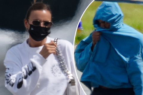 Канье малгайтай цамц өмсөж нүүрээ халхалсан байсан бол амны хаалттай ч стиллэг Ирина Шейк амархан танигджээ.