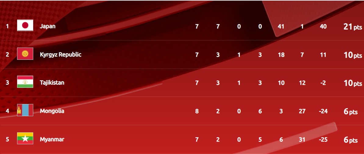 Катар 2022 хөлбөмбөгийн ДАШТ-ий Азийн бүсийн F хэсгийн тоглолтууд Японд үргэлжлэн явагдаж байна. Энэ хэсэгт Японы баг тасархай тэргүүлж, харин дараагийн шатанд шалгарах эрх авах хоёрдугаар байрны төлөө Киргиз, Тажикстаны багууд ширүүн өрсөлдөж байгаа.