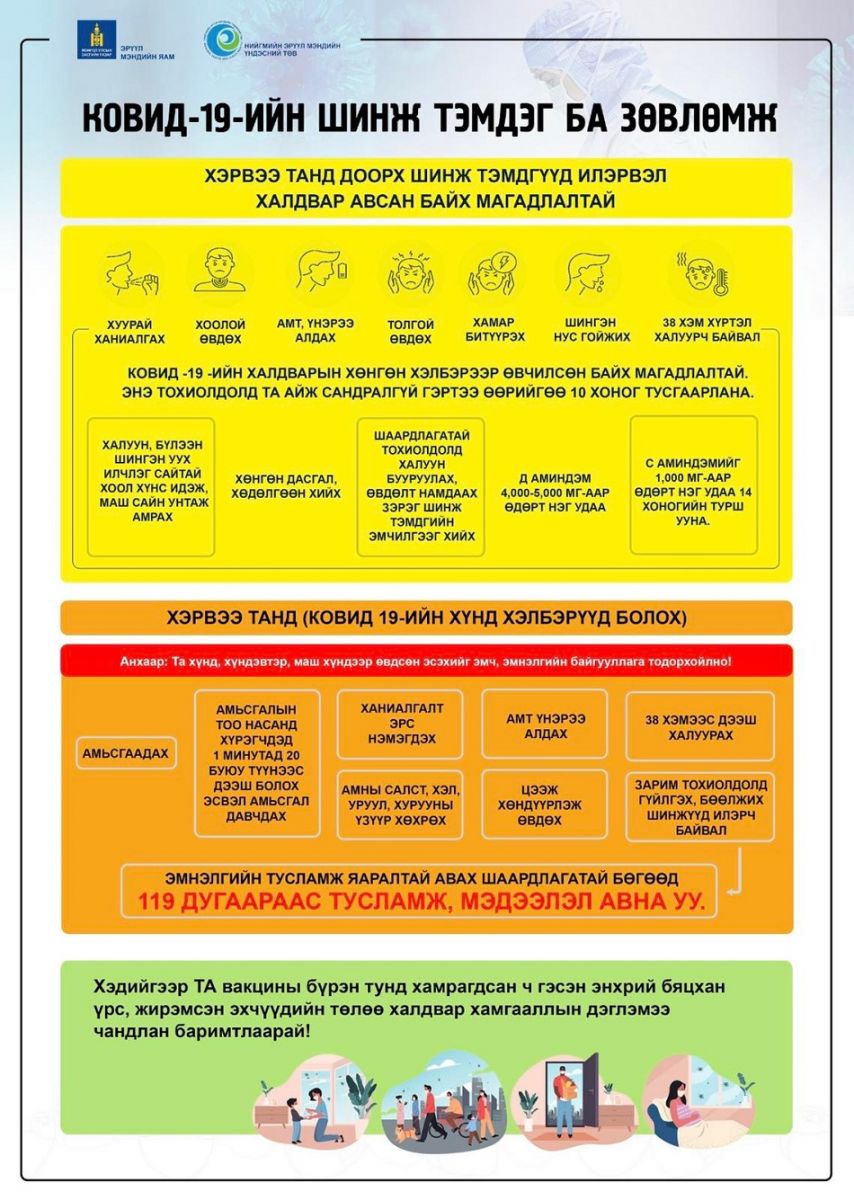 Хэрвээ танд доорх шинж тэмдгүүд илэрч байвал "Ковид-19" вируст халдвар авсан байх магадлалтай.
