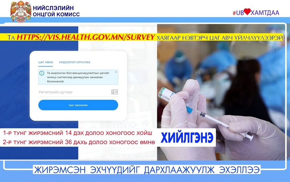 Жирэмсэн эхчүүд http://vis.health.gov.mn.survey цахим хаягаар цаг авч, дархлаажуулалтад хамрагдана.