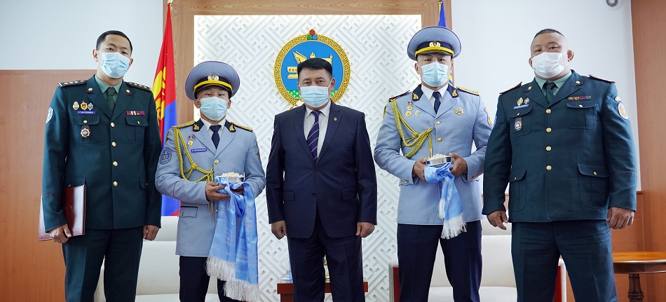 Шүүхийн шийдвэр гүйцэтгэх ерөнхий газрын дарга, хурандаа Д.Загджав Монгол Улсын гавьяат тамирчин цолоор шагнагдсан “Сүлд” спорт хорооны тамирчин Л.Отгонбаатар, Э.Цэндбаатар нарыг хүлээн авч уулзан, хүндэтгэл үзүүллээ.