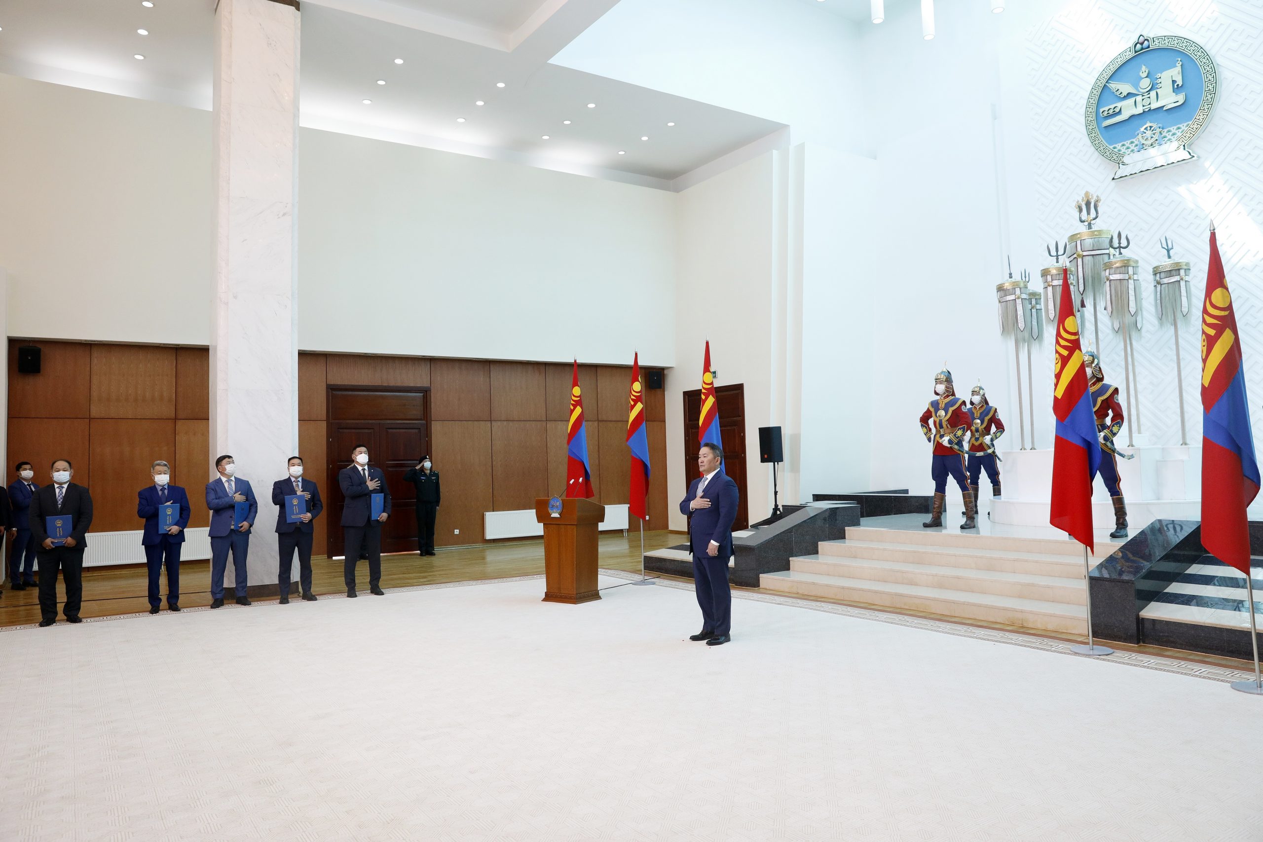 Монгол Улсын Ерөнхийлөгчийн дээрх зарлигийг төрийн зарим байгууллагад гардуулах ёслолын ажиллагаа өнөөдөр Төрийн ёслол, хүндэтгэлийн Их танхимд боллоо.