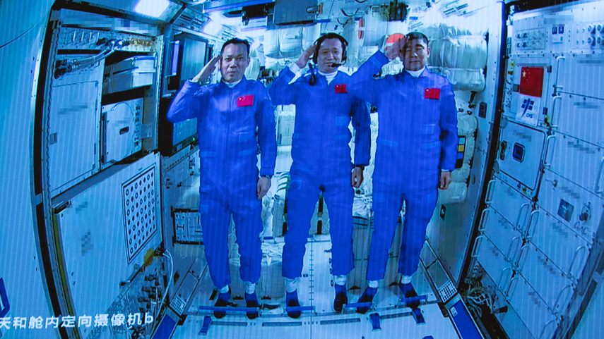 Шэньжөү-12 нисгэгчтэй сансрын хөлөг Тяньхэ үндсэн бүхээгний Тяньжөү-2 ачаа тээврийн сансрын хөлгийн хэсэгтэй автоматаар холбогдсоны дараа Бээжингийн цагаар 2021 оны зургаадугаар сарын 17-ны 18:48 минутад сансрын нисгэгч нар сансрын станц буюу үндсэн бүхээгтээ оржээ.