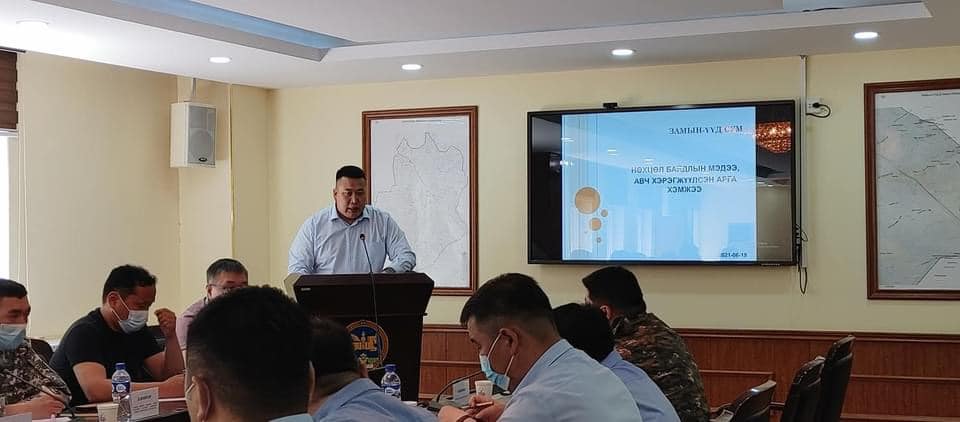 Өчигдөр ажлын хэсгийнхэн Замын-Үүд суманд ажилласан бөгөөд энэ үеэр Дорноговь аймгийн Засаг дарга О.Батжаргал тус сумын Онцгой комисс коронавируст халдвартай тэмцэх, хариу арга хэмжээ зохион байгуулахад тулгамдаж буй асуудал, цаг үеийн нөхцөл байдлын талаар танилцуулж, харилцан санал солилцож, тодорхой асуудлуудыг хэлэлцжээ.