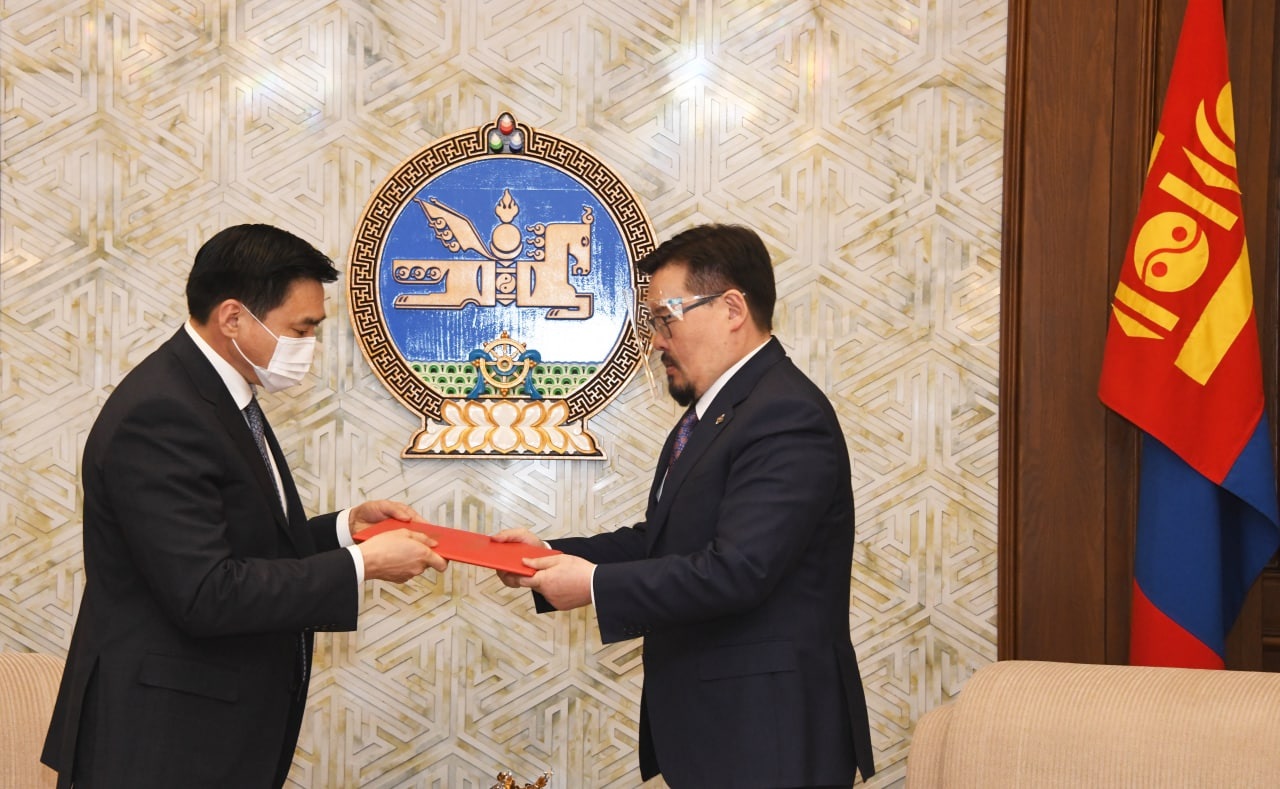 УИХ-ын дарга Г.Занданшатарт Коронавируст халдвар (КОВИД-19)-ын цар тахлаас урьдчилан сэргийлэх, тэмцэх, нийгэм, эдийн засагт үзүүлэх сөрөг нөлөөллийг бууруулах тухай хуульд нэмэлт, өөрчлөлт оруулах тухай хуулийн төслийг УИХ-ын гишүүн, Монгол Улсын Шадар сайд С.Амарсайхан өргөн барилаа (2021.06.18).