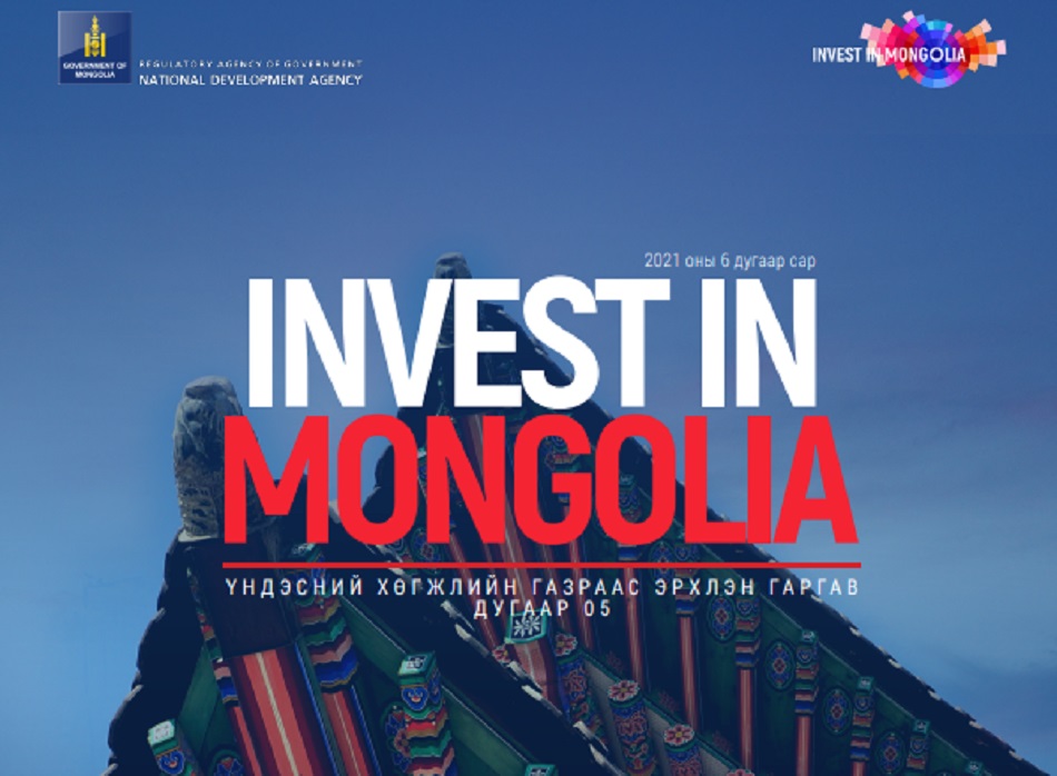 “Invest in Mongolia – Seoul 2021” МОНГОЛ-СОЛОНГОСЫН БИЗНЕС ФОРУМ -ийг Үндэсний хөгжлийн газраас зохион байгуулж байна. Тус арга хэмжээ нь Монгол, Солонгос хоёр улсын хамтын ажиллагааг эдийн засаг, хөрөнгө оруулалтын салбарт өргөжүүлэх, Солонгосын хөрөнгө оруулагч, бизнес эрхлэгчдэд Монгол Улсын хөрөнгө оруулалт, бизнесийн орчны талаарх сүүлийн үеийн мэдээллийг хүргэж, хөрөнгө оруулалт эрэлхийлсэн боломжит төслүүдийг танилцуулах зорилготой. Цар тахлын улмаас тус форумыг 2021 оны 6 дугаар сарын 23-ны өдөр цахимаар зохион байгуулахаар төлөвлөж бэлтгэл ажлыг хангажээ.