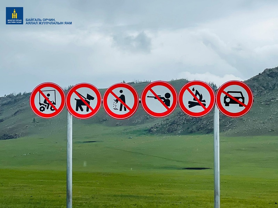 - Та аялах явцдаа хөрс, ус, агаар бохирдуулах аливаа үйл ажиллагаа явуулах болон тухайн газрын хамгаалалтын захиргааны зөвшөөрөлгүйгээр нохой дагуулж, буу авч явахгүй байхыг анхаарна уу.