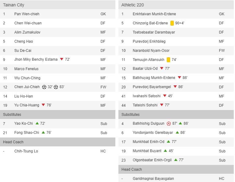 Эхний тоглолтоо 6-р сарын 23-нд “Тайнан Сити”-тэй хийж, 0:3 ялагдлаа.