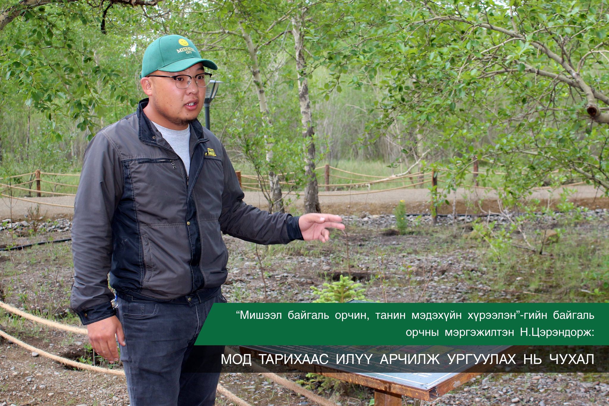 -Арчилгаатай ургасан мод бол сайн ургалттай байдаг. Гэтэл манай зарим иргэд мод суулгаад л орхичихдог. Нэг үгээр ургаж байна уу, ургахад тэжээл дутагдаж байна уу, хортон шавьжид идэгдэж байна уу гэх мэт арчилгааг огтхон ч хийдэггүй. Эзгүйрсэн талд мод суулгаад орхичихдог. Тэгээд би мод тарьсан гээд яриад байдаг. Үнэндээ хэдэн хувьтай ургасан бэ гэдгийг ч тоодоггүй. Манай хүрээлэнд бол мод бүрийг арчилж тордож байна. Харилцагч байгууллагуудынхаа тариад үлдээсэн модыг манай мэргэжлийн багийнхан арчилж ургуулж байна. Мөн дашрамд хэлэхэд та байгууллага хамт олноороо мод тарих хүсэлтэй бол, тарьсан мод нь борц болохгүйгээр ургах арчилгаатай газрыг хайж байгаа бол “Мишээл байгаль орчин, танин мэдэхүйн хүрээлэн”-г сонгоорой гэж зөвлөх байна.