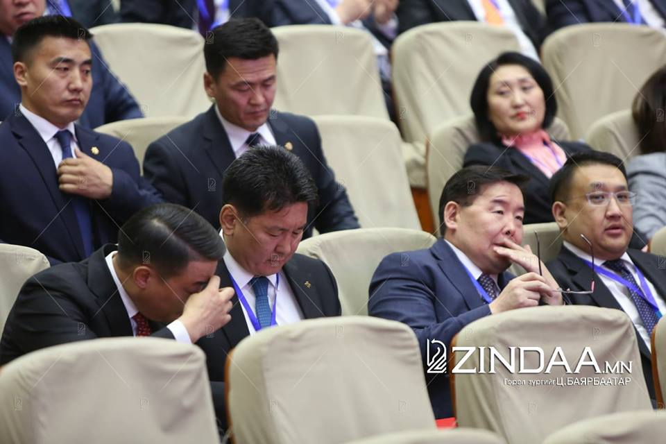 Монгол Улсын Ерөнхийлөгч намын гишүүнчлэлээсээ татгалзах хуулийн заалттай тул 11:40 цагт тангараг өргөхөөс өмнө ийнхүү намын дотоод асуудлаа шийдэхээр хурал зарласан юм.