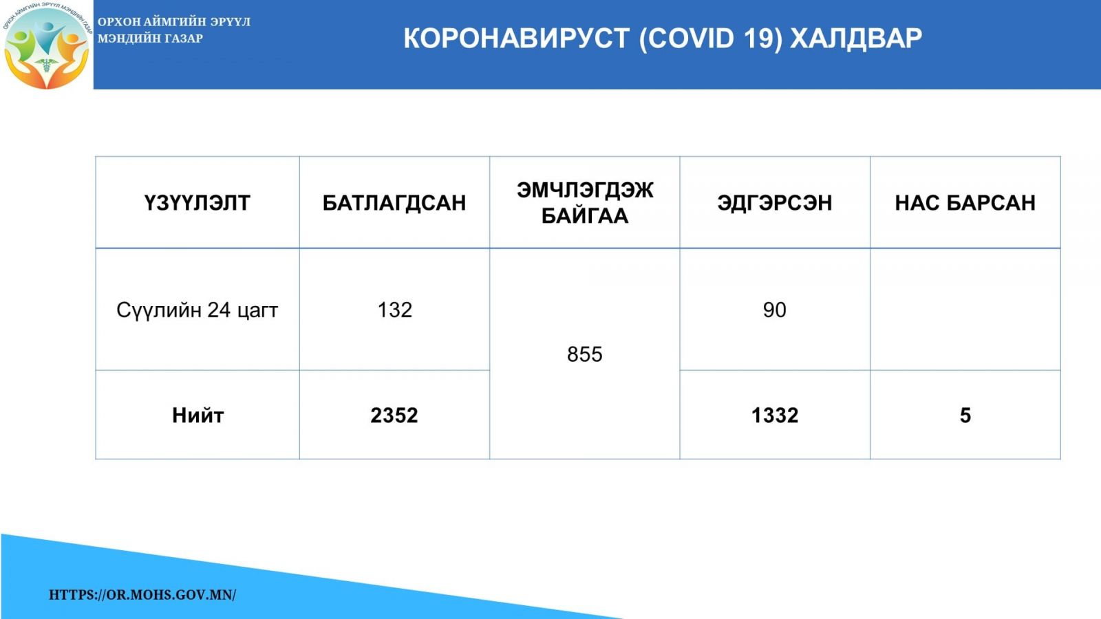 Орхон аймгийн Онцгой комиссоос аймгийн коронавируст халдварын нөхцөл байдлын талаар мэдээллээ.