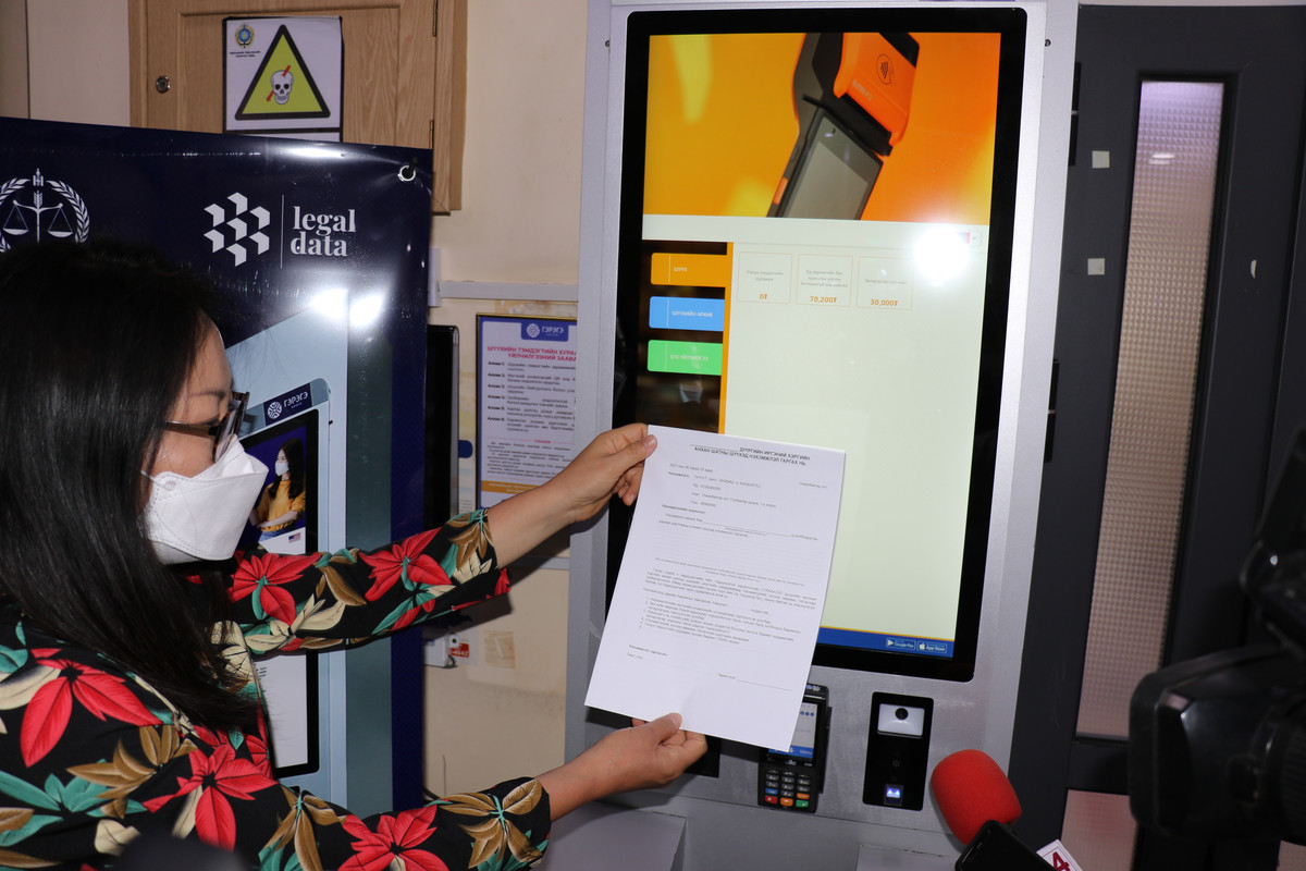 Шүүхээр үйлчлүүлэгч “Гэрэгэ киоск” төхөөрөмжид хувийн мэдээллээ оруулж, шүүхийн нэхэмжлэл, хүсэлтийн бэлэн загварыг А4 хэмжээтэй цаасан дээр хэвлэн авах боломжтой боллоо. Сүхбаатар, Чингэлтэй дүүргийн Иргэний хэргийн анхан шатны шүүхийн байранд байрлах “Киоск” төхөөрөмж дээр уг үйлчилгээг нэвтрүүллээ.
